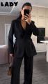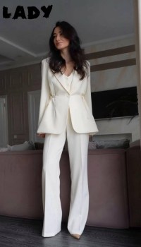 Элегантная тройка с жилеткой, приталенным пиджаком и широкими брюками.