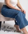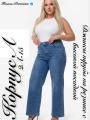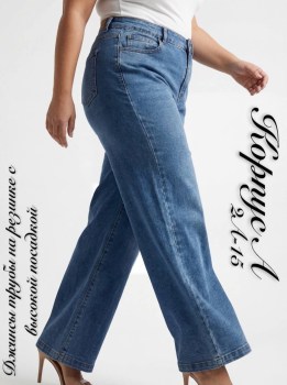 Джинсы трубы на резинке с высокой посадкой.