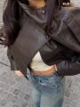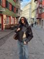 Объмная кожаная косуха в трендовом шоколадном оттенке Модель с широкими плечами, стильной фурнитурой и свободной посадкой.