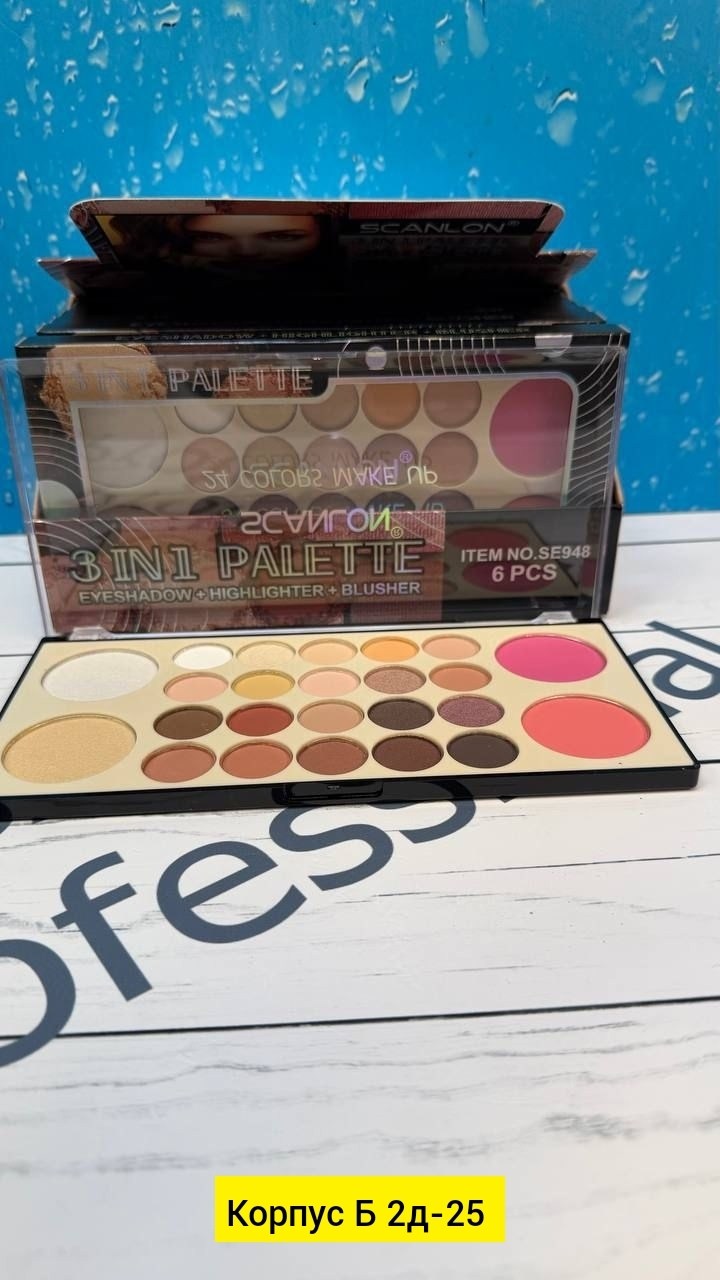 Эти палетки 3 в 1 сочетают в себе шиммерные и матовые оттенки, которые являются универсальными Их можно применять как тени, как контур для лица, а так же в виде хайлайтера Сочетание цветов пушка.