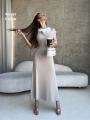 Красивое, облегающее фигурку, мягко струится по подолу Очень нежный и романтичный образ, а цена порадует каждую.