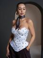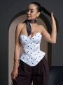 Белый корсетный топ в чрный горошек: воплощение женственности и элегантности.