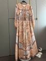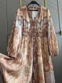 Платье zimmermann premium качества, элегантное макси- платье изготовлено из премиальной шелковистой тканьи, мягкой и дышащей, идеально для жаркой погоды, украшено принтом пейсли в бежевый тонах, имеет v-образный вырез, спереди расположена декоративная планка с пуговицами-руло, а сзади - потайная замтежка-молния, длина изделия: 140 см.