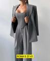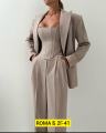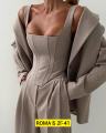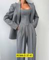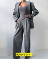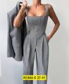 Комплект, состоящий из двубортного жакета, корсета на замке и прямых брюки.