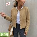 Однотонная женская куртка-бомбер с длинным рукавом, модным дизайном, элегантная, свободная базовая модель.