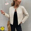 Однотонная женская куртка-бомбер с длинным рукавом, модным дизайном, элегантная, свободная базовая модель.