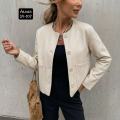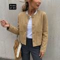 Однотонная женская куртка-бомбер с длинным рукавом, модным дизайном, элегантная, свободная базовая модель.