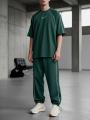 Мужской костюм из тканьи двухнитка комфортный и стильный вариант на каждый день Свободная футболка и брюки на кулисе обеспечивают удобную посадку и не сковывают движения Практичный выбор для повседневной носки и отдыха.