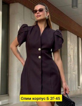 Стильный платье-пиджак с золотыми пуговицами.