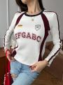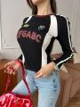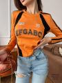 Женский лонгслив гоночный с лампасами и нашивками идеальный выбор для поклонниц корейского стиля и трендового направления y2k!.