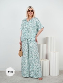 Лгкий и воздушный костюм В комплект входят свободная рубашка и широкие брюки.