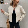 Однотонная женская куртка-бомбер с длинным рукавом, модным дизайном, элегантная, свободная базовая модель.