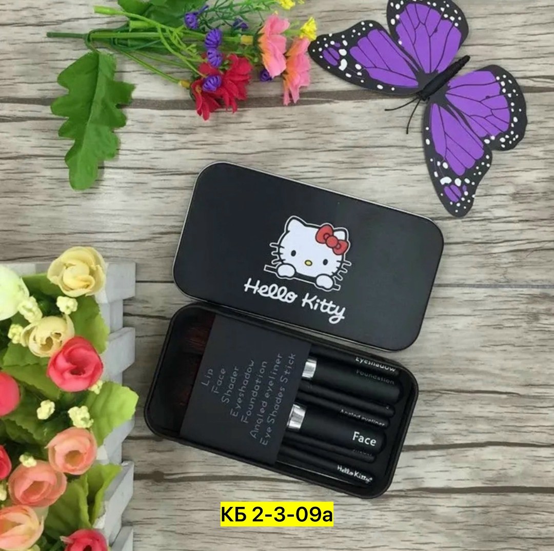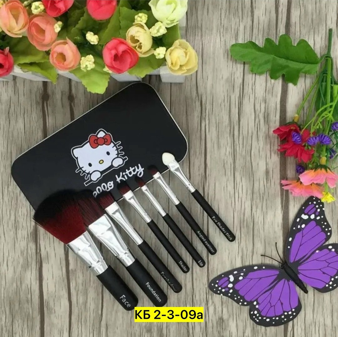 Набор кистей для макияжа hello kitty (7 штук) в металлической коробке Мятный коробка без выбора.