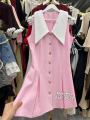 Получили платья с воротником золотистыми пуговицами фабричный китай шикарная качество шести расцветок.