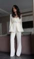 Элегантная тройка с жилеткой, приталенным пиджаком и широкими брюками.