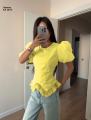 Стильная сногсшибательная блузка с акцентными рукавами фонариками - идеальный выбор для создания элегантного и женственного образа.