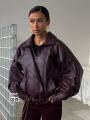 Объмная кожаная косуха в трендовом шоколадном оттенке Модель с широкими плечами, стильной фурнитурой и свободной посадкой идеально под платье, худи или базовый лонгслив.