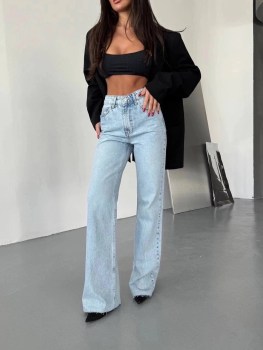Джинсы с высокой посадкой идеальная база для стильных образов Прямой свободный крой визуально вытягивает силуэт и подчркивает талию, а плотный деним красиво держит форму.