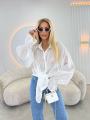 Рубашка женская из органзы с рукавом фонарь, это изящный акцент в гардеробе, сочетающий в себе непринужденную элегантность и игривую деталь Она словно шепчет о свободе движения, позволяя обладательнице выражать свою индивидуальность через легкие, кокетливые детали на рукавах.