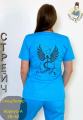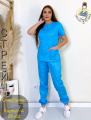 Состоит из блузы с коротким рукавом с принтом и брюк.