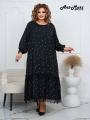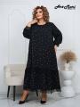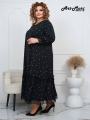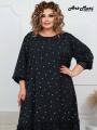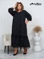 Элегантное платье лиза горох в мелкий белый горошек Модель выполнена в свободном, расслабленном силуэте, что делает ее универсальной и комфортной для повседневной носки!.
