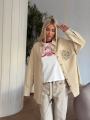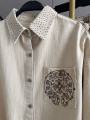 Трендовая джинсовка chrome hearts premium качества, сделана в стиле оверсайз, имеет свободный крой, нагрудной карман, отложной ворот, украшена стразами.