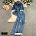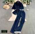 Модный комплект: рубашка с завязками свободные брюки.