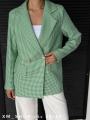 Базовый пиджак в модной расцветке гусиная лапка - популярный тренд весной 2026 года Удлиненный двубортный блейзер прямого кроя с карманами и длинным рукавом создает модный и элегантный old money образ, оставаясь в рамках классического стиля.
