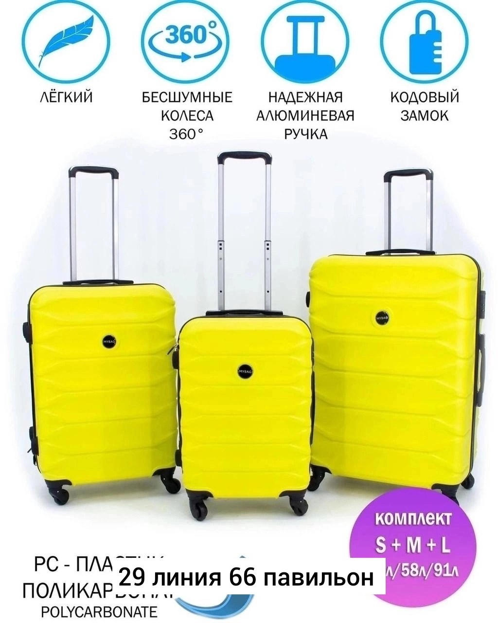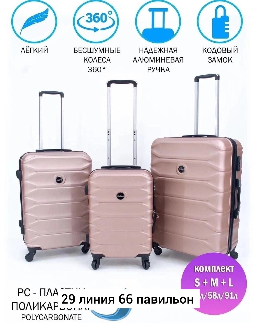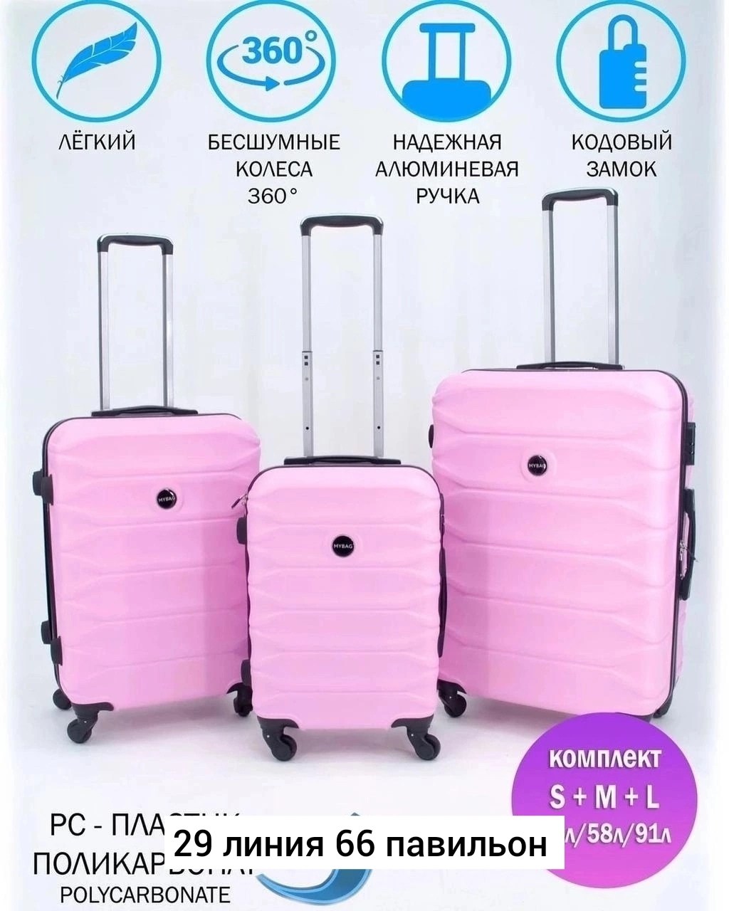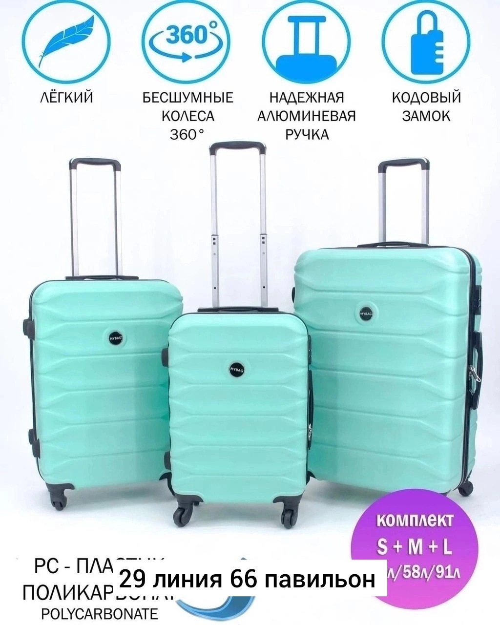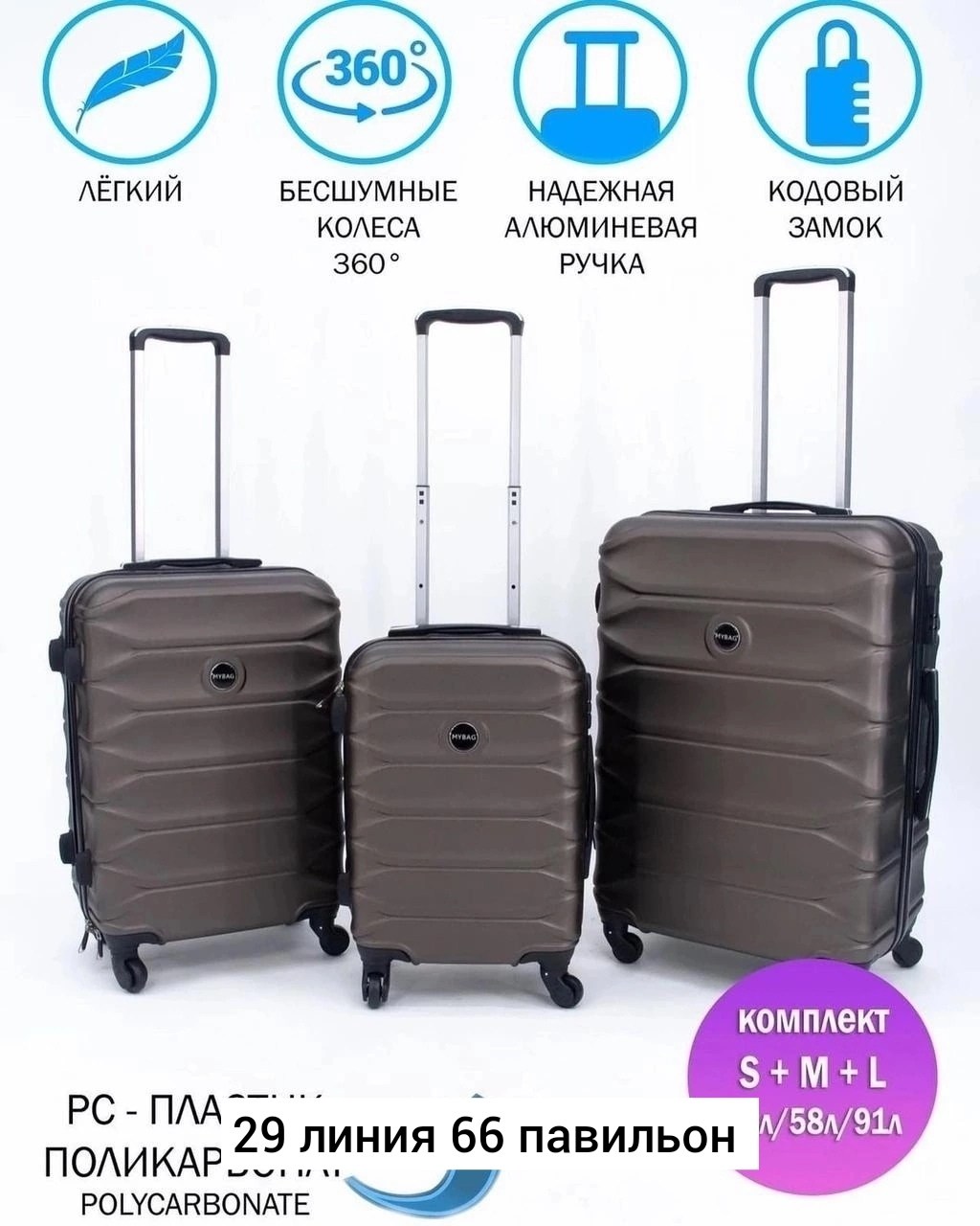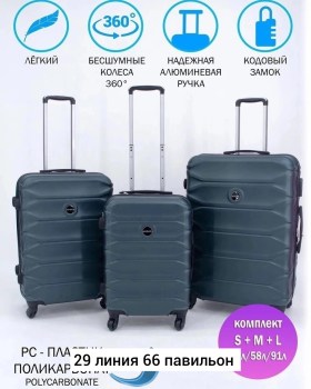 Набор из 3-х чемоданов на 4-колeс на 360 крутится.