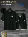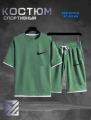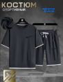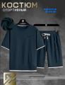 Летний мужской костюм из трикотажа высшего качества Комплект состоит из футболки с короткими рукавами и шорт с карманами по бокам и поясом на шнуровке.