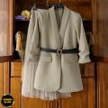 Пиджак выполнен из высококачественной тканьи барби с подкладкой, что обеспечивает отличную посадку и приятные тактильные ощущения.