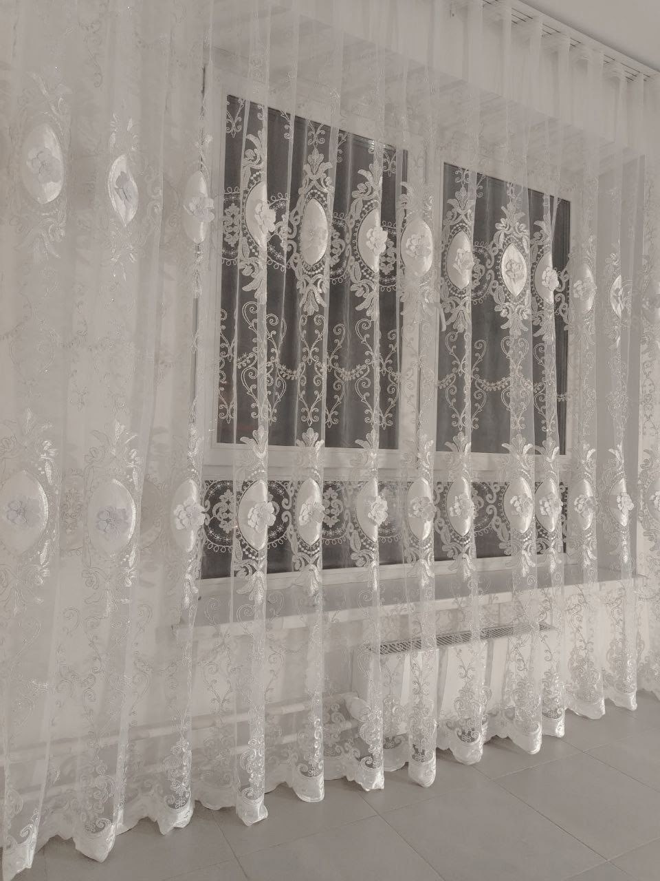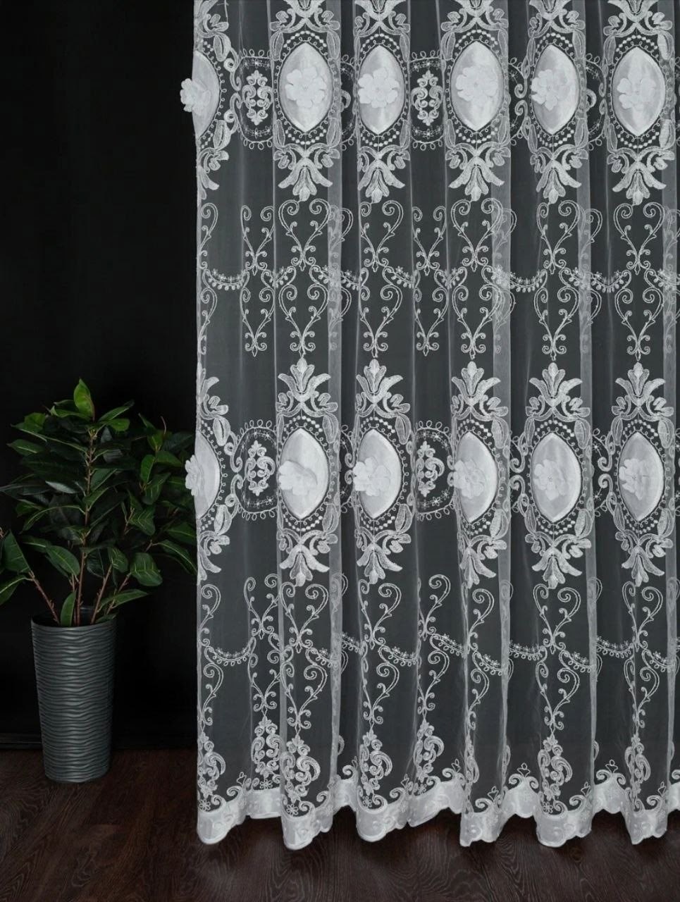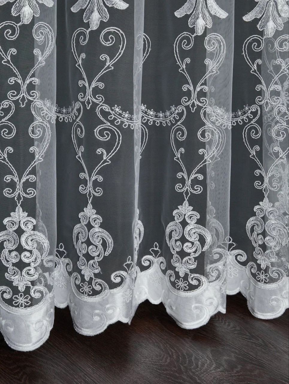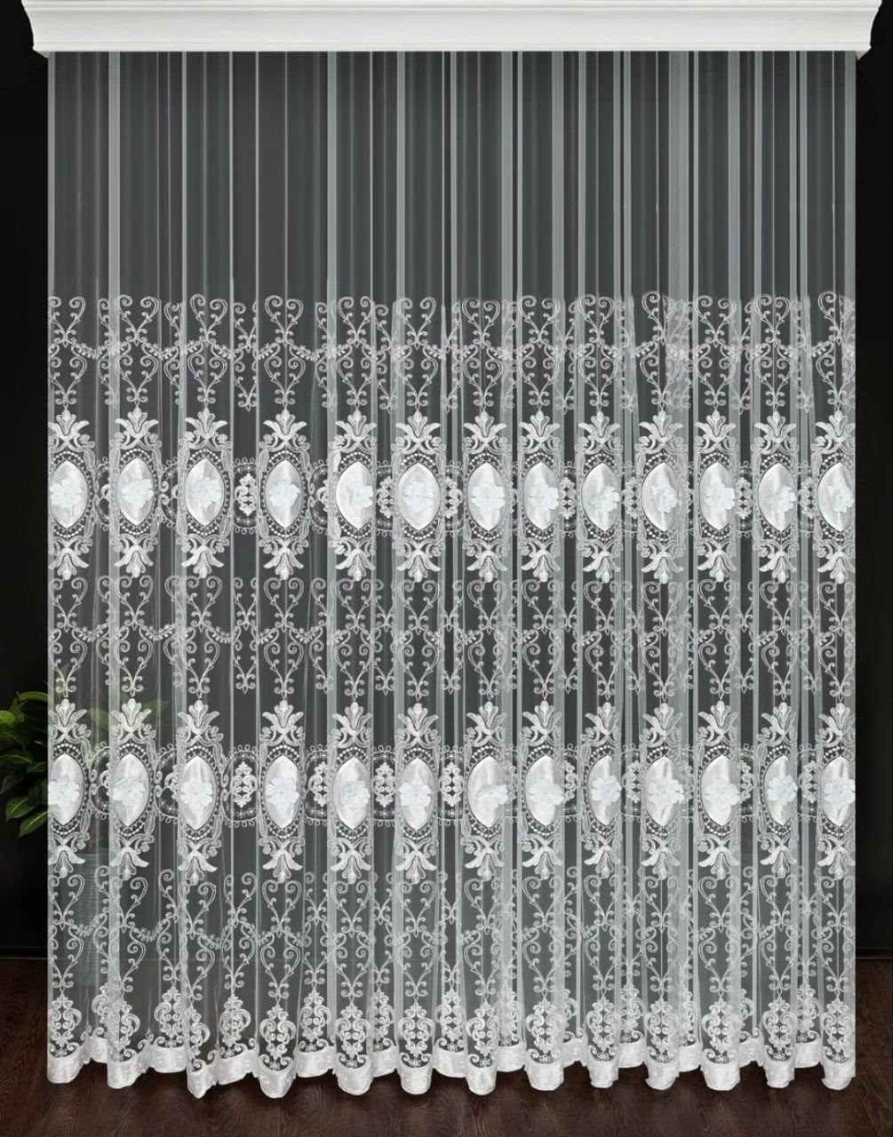 Тюль 3d с вышивкой и жемчугом