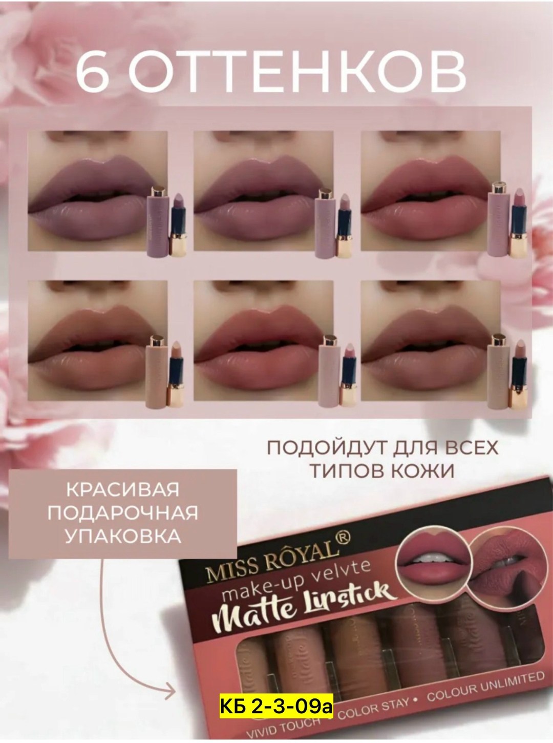 Откройте для себя идеальное косметическое средство для создания безупречного образа - набор матовая помада для губ 6штук Это ультра матовая помада обладает кремовой текстурой, которая наносится легко и быстро благодаря удобному аппликатору.