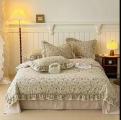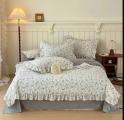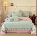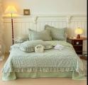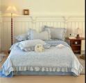 Белье готово одеялом из мако санин с рюшами.