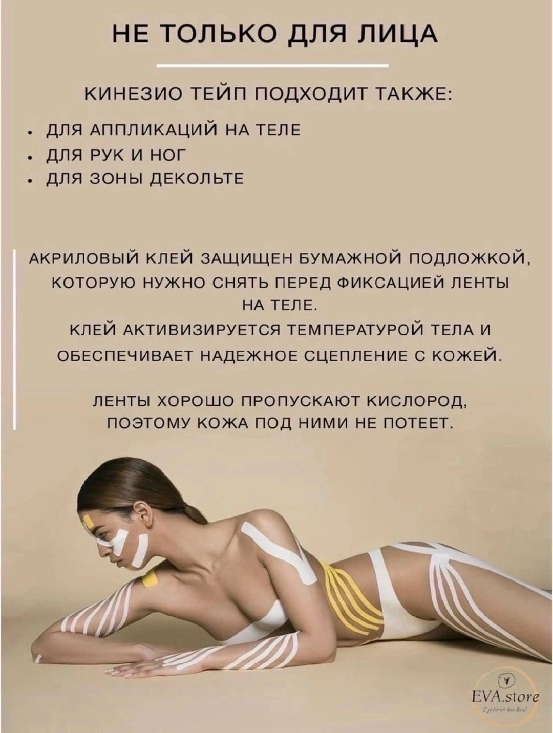 Тейпирование лица одно из новейших направлений в косметической медицине, которая улучшает состояние кожи и устраняет морщины без хирургических вмешательств и инъекционных методов омоложения Лифтинг тейп от подарит вам уход для лица в домашних условиях Наш продукт отличается нулевым риском, так как хлопковая лента не способна бесповоротно испортить внешность Лента не оставляет негативных последствий в виде раздражения и покраснения кожи, но спасает от морщин Даже один сеанс эстетического тейпирования шеи и лица приносит заметный результат Регулярное применение тейпов для лица (рекомендуемый курс 21 день) кардинально преображает внешность Наш продукт способствует видимому омоложению и улучшают черты лица природным способом.