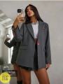 Пиджак оверсайз с розовыми пуговицами.