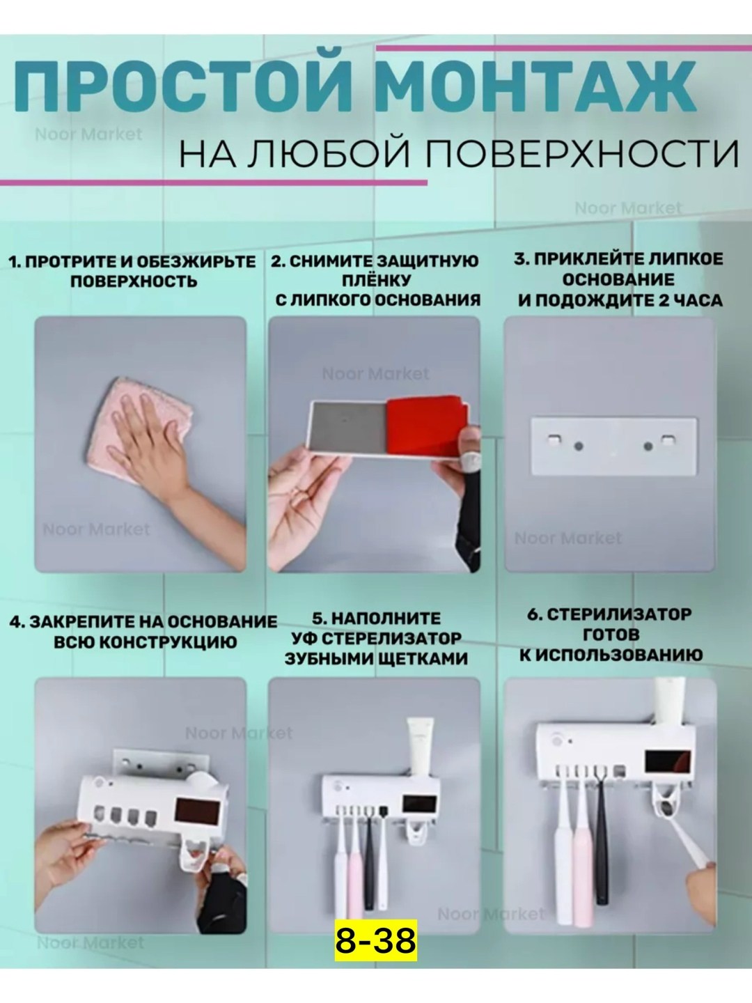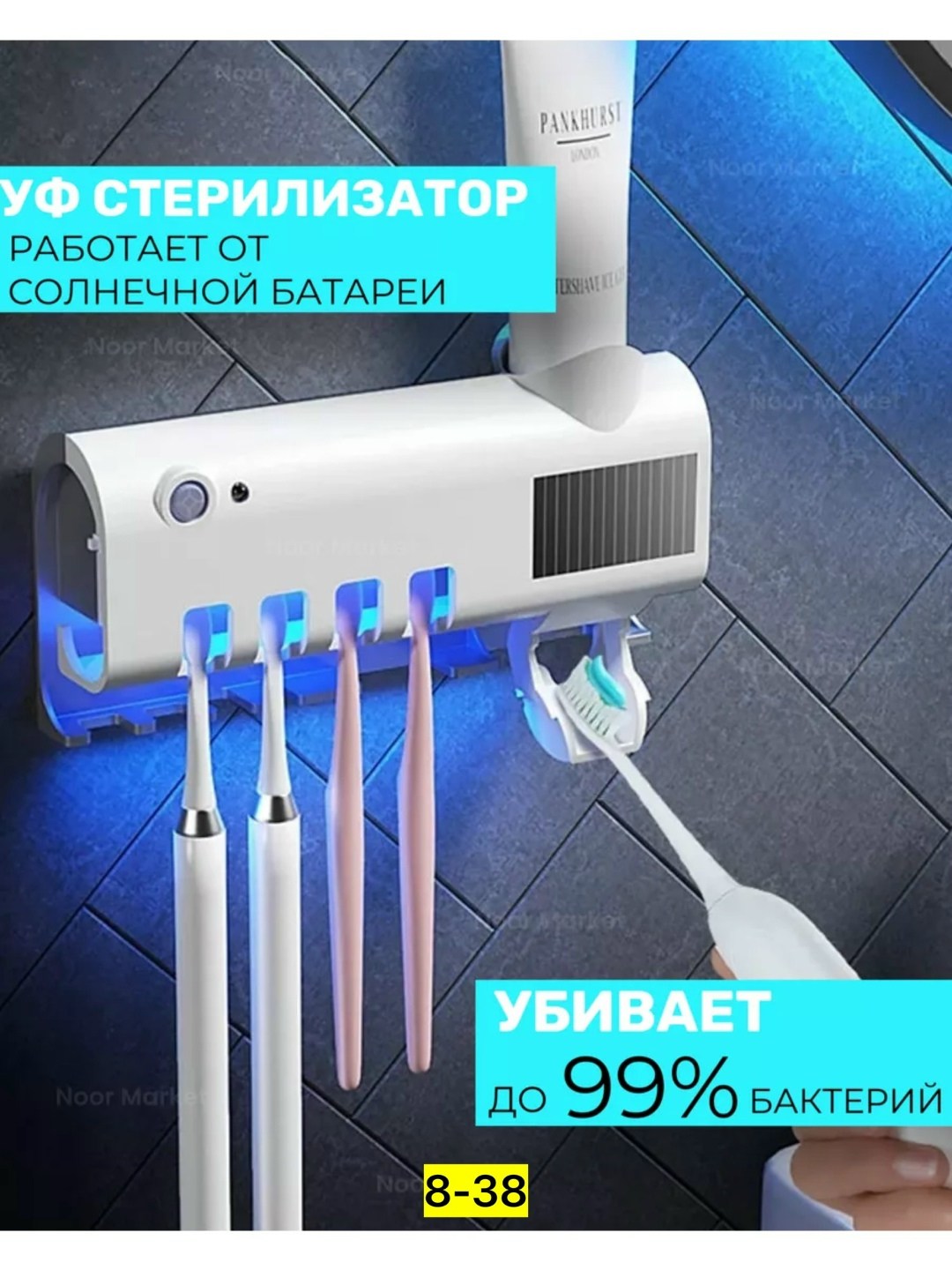 Умный держатель для зубных щеток со встроенным уф-стерилизатором - это идеальное рещение для поддержания чистоты и гигиены в вашей ванной комнате Настенный держатель имеет удобный сенсорный диспенсер для зубной пасты с дозатором выдавливателем.