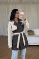 Стильный двухцветный тренч с акцентным кроем и поясом в комплекте Эффектная модель для тех, кто любит выделяться и собирать трендовые образы.