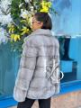 Шубка из меха норки, воротник английский, длина 70 см, цвет лаванда.