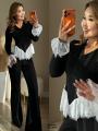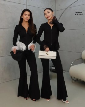 Уникальный женский комплект,стильная укороченная кофточка с гипюром на молнией, клещевые штаны.