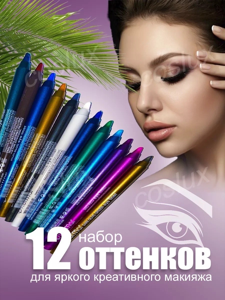 Набор водостойких карандашей для глаз flormar 12 шт.