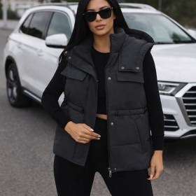 Демисезонная жилетка модная с капюшоном и пояс.