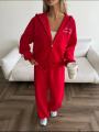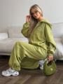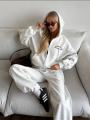 Современный спортивный костюм для комфортной повседневной носки, прогулок и отдыха Комплект состоит из худи на молнии с капюшоном и брюк свободного прямого кроя, которые создают стильный и расслабленный силуэт.