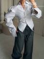 Акцентная рубашка в полоску с эффектными объемными рукавами и приталенным силуэтом Идеальна для стильных и женственных образов.