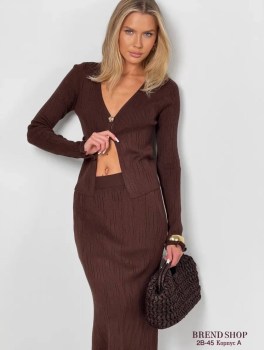 Этот нарядный костюм с юбкой миди станет идеальным дополнением шикарные ветровкиа, сочетая в себе стиль и комфорт.