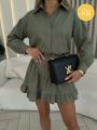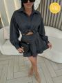 Женские костюм двойка рубашка с юбкой свободной крой юбкой с боком молний.