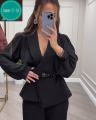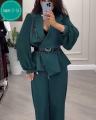 Брюки на резинке, пиджак застегивается на пуговицу Подходят как для офиса, так и для повседневных образов.