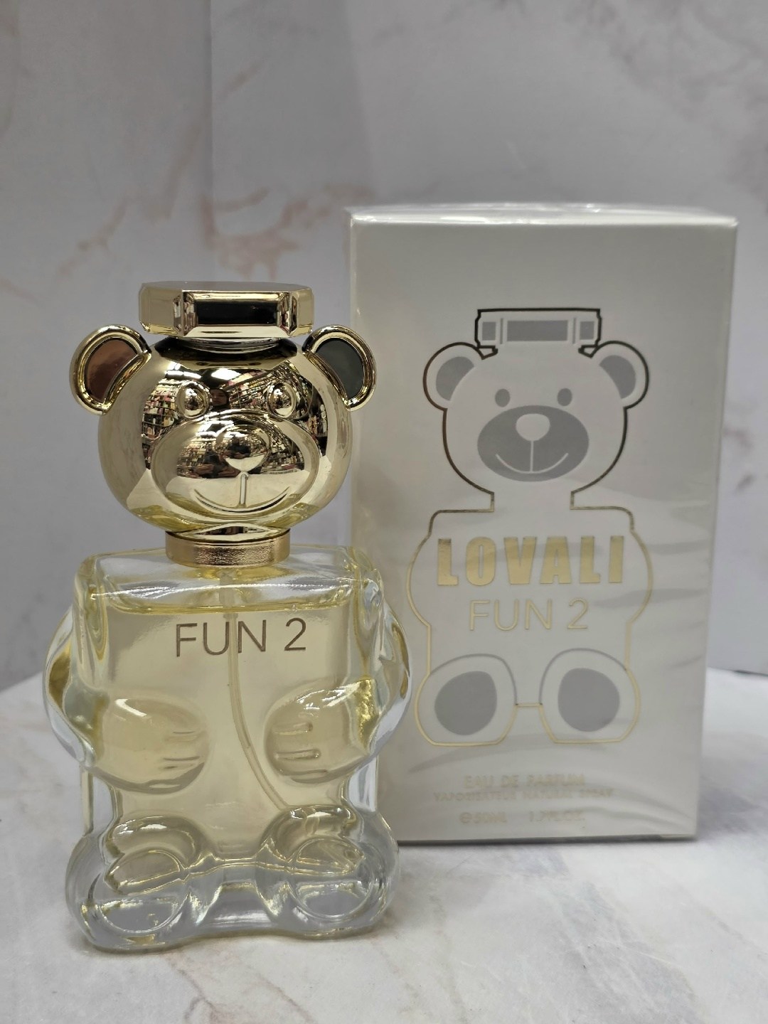 Женский парфюм lovali fun 2 объемом 50 мл Этот аромат выполнен в характерном дизайне в форме золотистого медвежонка, который является узнаваемым оммажем (или версией по мотивам) популярного парфюма moschino toy 2.
