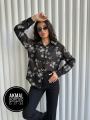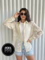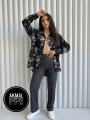 Двойка из шикарной жатой рубашки с длинным рукавом в крупных вышитых цветах и белой майки.