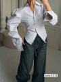 Акцентная рубашка в полоску с эффектными объемными рукавами и приталенным силуэтом Идеальна для стильных и женственных образов.